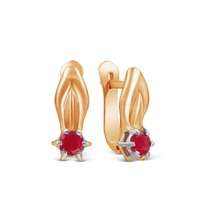 Серьги-пусеты из серебра с красным рубином и золочением родированные