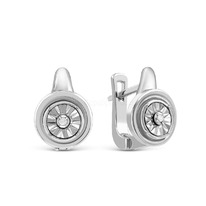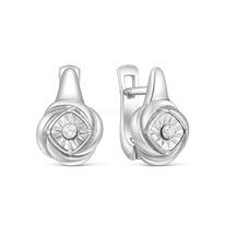 Серьги из серебра с синт.муассанитом и фианитами родированные