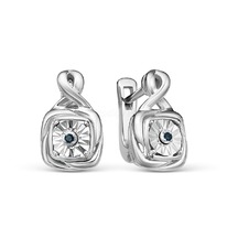 Серьги из серебра с натуральным сапфиром и кубическим цирконием родированные - С