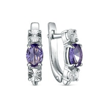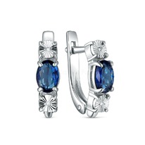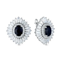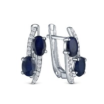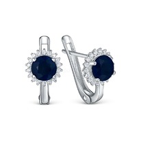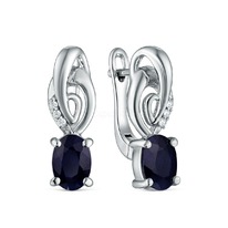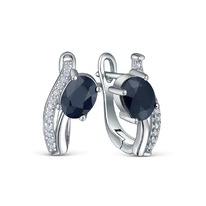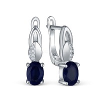 Серьги из серебра с сапфиром и кубическим цирконием родированные