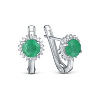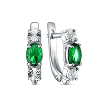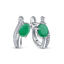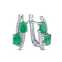 Серьги из серебра с изумрудом и кубическим цирконием родированные