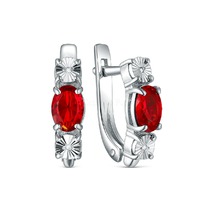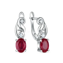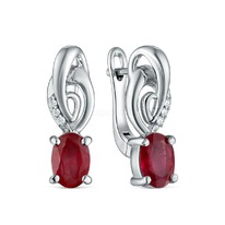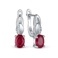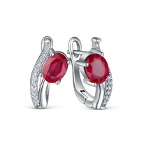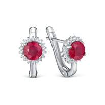 Серьги из серебра с синтетическим рубином и фианитами родированные