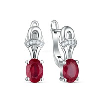 Серьги из серебра с рубином и кубическим цирконием родированные