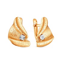Серьги из золочёного серебра с бриллиантом и частичным родированием