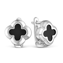 Серьги из серебра с фианитами родированные Клевер 925 пробы 11-1013р