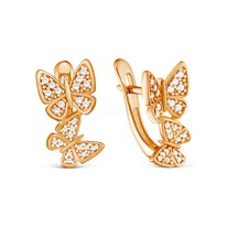 Серьги-пусеты из золочёного серебра с родированием и алмазной огранкой - Стрекоз