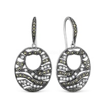 Серьги из чернёного серебра с горным хрусталём и марказитами