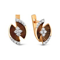 Серьги из золочёного серебра с нат. кораллом, фианитами и родированием