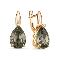 Серьги из золочёного серебра с кристаллами премиум австрия дымчатый