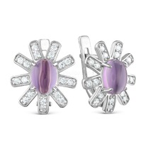 Серьги женские цветы из серебра с натуральным аметистом и фианитами родированные