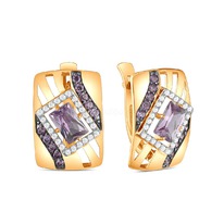 Серьги из золочёного серебра с выращенным александритом и фианитами