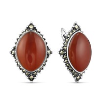 Серьги из чернёного серебра с натуральным гранатом и марказитами - Совы