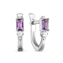 Серьги-пусеты из серебра с аметистом и фианитами родированные