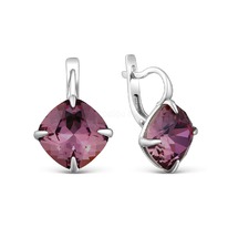 Серьги-продёвки из серебра с кристаллами премиум Австрия цв. родолит родированны
