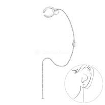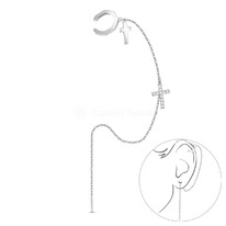 Серьга-пусет из серебра с фианитами родированная - Моносерьга с цепочкой и каффо