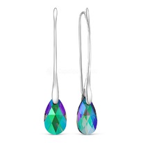 Серьги женские длинные из серебра с кристаллом премиум Австрия цвета Радуга роди