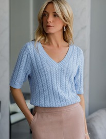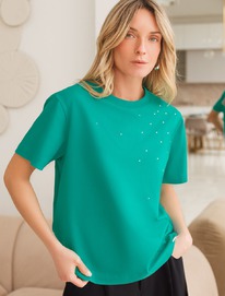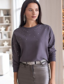 Джемпер с цельнокроенным коротким рукавом из хлопковой пряжи с пайетками