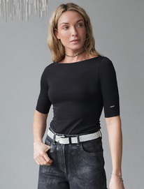 Футболка облегающая из хлопка в рубчик с вырезом лодочка с матовым покрытием мет