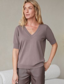 Футболка облегающая из хлопка в рубчик с V вырезом и матовым покрытием металлик