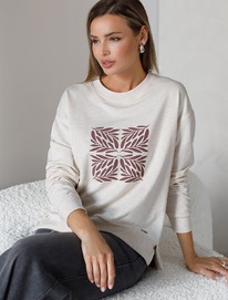 Свободный свитшот с принтом и разрезами из эластичного футера двухнитки без наче