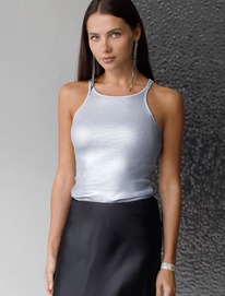 Топ в рубчик с широкими лямками с матовым покрытием металлик из хлопка с эластан