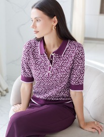 Джемпер с воротом на молнии жаккардовой вязки с кашемиром