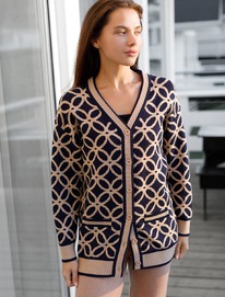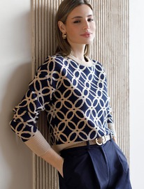 Свитер с боковыми разрезами жаккардовой вязки с кашемиром