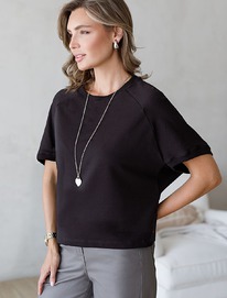 Футболка из плотного трикотажа в рубчик с V-образным вырезом