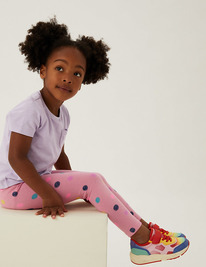 marksandspencer Cotton Spotted Leggings (2-7 Yrs) Pink