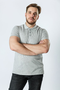 Джемпер хенли из полотна пике с меланжевым плетением с эластаном