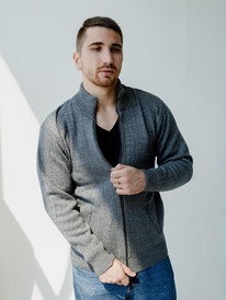 ESENIA Кофта-жакет мужская на молнии плотной вязки - Тёмно-серый