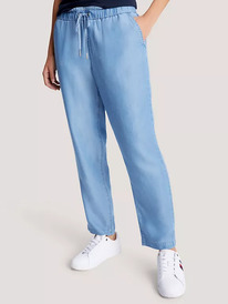 TomH Lightweight Tapered Drawstring Pant Light Wash Chambray