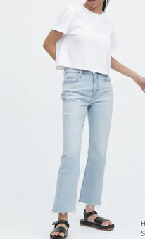 UNIQLO UK KICK FLARED CUT-OFF JEANS BLUE