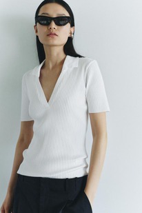 ESENIA Джемпер поло ажурный из вискозы с коротким рукавом - Бежевый