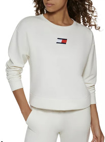 Macys TH Womens Flag Graphic Sweatshirt EGGSHELL