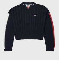 TH MIXED KNIT CROPPED SWEATER Sky Captain