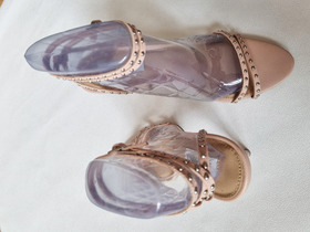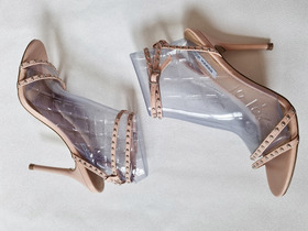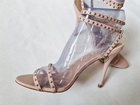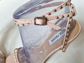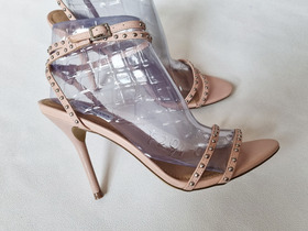 Новые сексуальные босоножки с открытой пяткой известного американского бренда Steve Madden, Women's Dress Sandal. Придайте своему стилю сексуальности используя эти очаровательные босоножки на шпильке. Кожаный верх с шипованной отделкой, завязывающийся ремешок на щиколотке с пряжкой, открытый носок, искусственная подкладка, слегка мягкая стелька. Цвет: Blush Leather, бежевый. Размер: 10М US, 40 наш, каблук 108 мм. Без коробки.