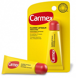Бальзам CARMEX защищает от воздействия ветра, холодного воздуха и солнца; увлажняет и питает тонкую кожу губ. Бальзам является превосходной основой для макияжа губ.