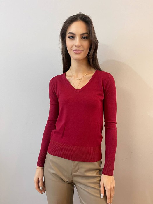 Aim cloДжемпер крупной вязки с V-образным вырезом, терракот