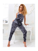 Комбинезон из роскошной бархатной ткани благородного серого цвета. Кулиска на талии, удобные боковые карманы.