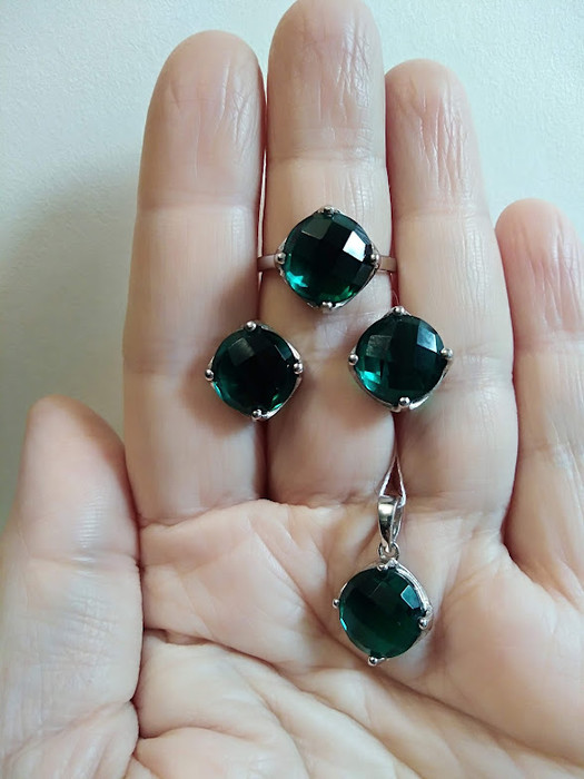 — Комплект Итака с выращенным аквамарином, кольцо 19,5