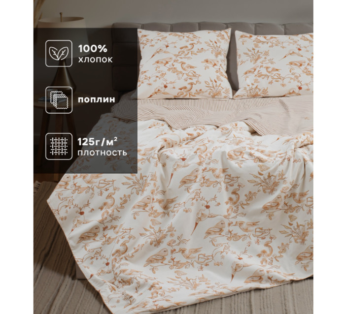 Комплект постельного белья из мако-сатина Бежевые Цветы