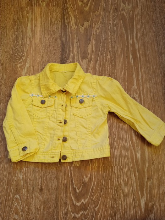 Куртка по типу тонкой джинсовки, хлопок. Покупала в США, фирму не помню, этикетки срезаны. Надевали пару раз, состояние новой вещи. Возраст примерно 1,5 - 2 года.