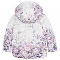 Куртка из водонепроницаемой ткани в цветочном принтом на хлопковой подкладке застегивается на пуговицы-кнопки.