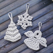 — Набор елочных игрушек вязаный: ангел, снежинка, елочка