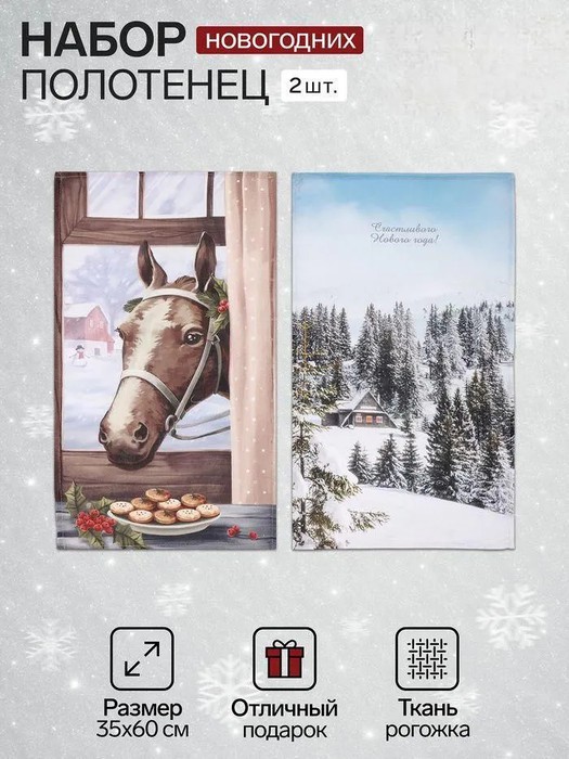 — Набор кухонных полотенец 2шт из рогожки Зимняя сказка