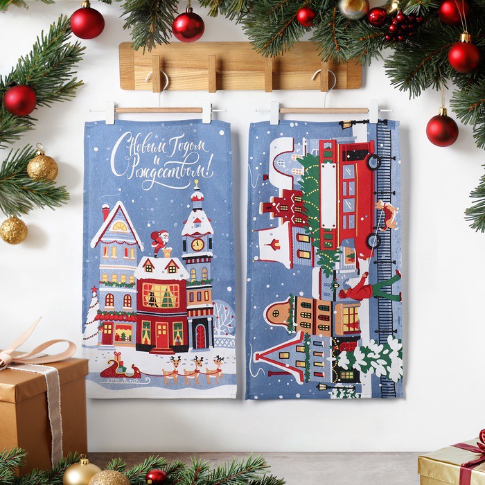 Заказать Набор кухонных полотенец из рогожки С Новым годом 35*60см (2шт)