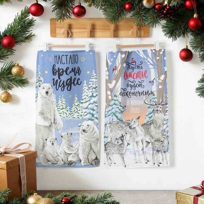 Набор кухонных полотенец из рогожки С рождеством 35*60см (2шт)