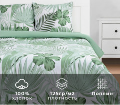 Комплект постельного белья из поплина Эвкалипт белый/олива