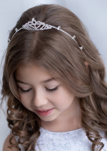 Стильный ободок, в виде коронки, декорирован стразами, великолепно дополнит праздничный образ.